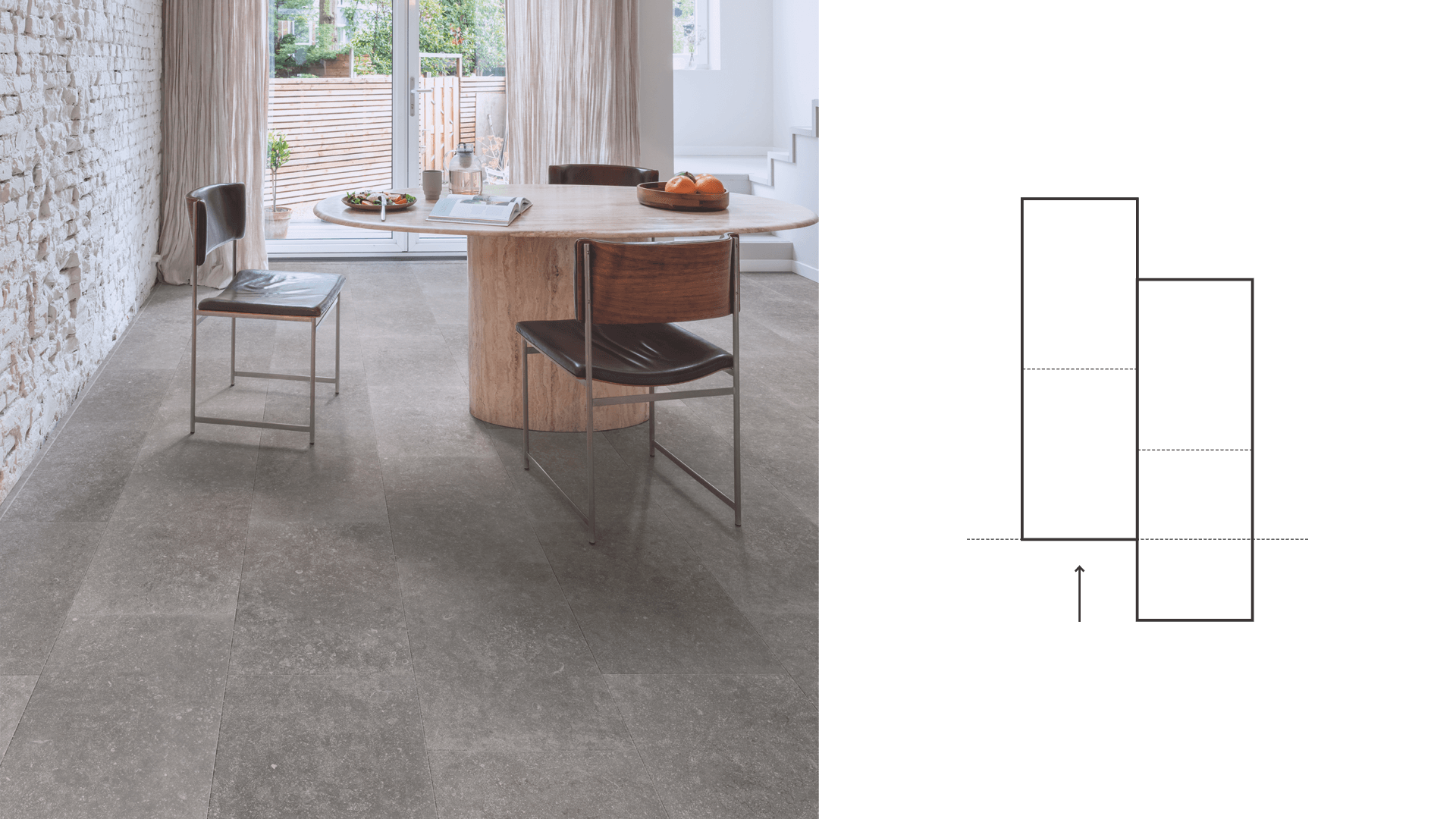 In tegenstelling tot een echte massieve tegelvloer, leg je Muse tegellaminaat snel en eenvoudig zelf. Dankzij het gebruiksvriendelijke Uniclic systeem klik je je vloer helemaal zelf in elkaar. De Muse vloeren kun je in 2 verschillende patronen leggen:
